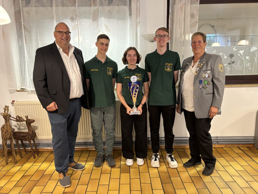 Der Pokal wurde überreicht durch den Bürgermeister der Gemeinde Rodenbach, Herrn Klaus Schejna und Bezirksschützenmeisterin Birgit Sczeburek.